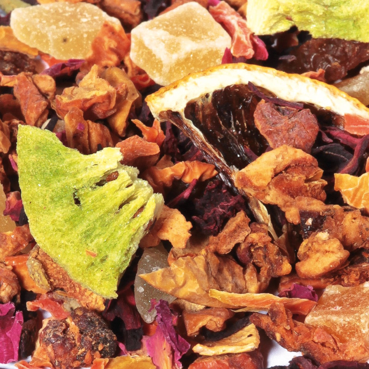 Découvrez la savane africaine dans une tasse avec notre thé Safari Fruité ! Ce mélange exotique de fruits tropicaux, de pétales de rose et d'hibiscus offre une expérience de dégustation inoubliable. Les notes sucrées de pomme, de raisin et de papaye s'harmonisent parfaitement avec l'acidité rafraîchissante de la mangue et de l'ananas, tandis que la carotte et la betterave rouge apportent des vitamines et des antioxydants essentiels pour maintenir une bonne santé. Essayez-le dès maintenant et laissez-vous transporter dans la savane africaine avec chaque gorgée !